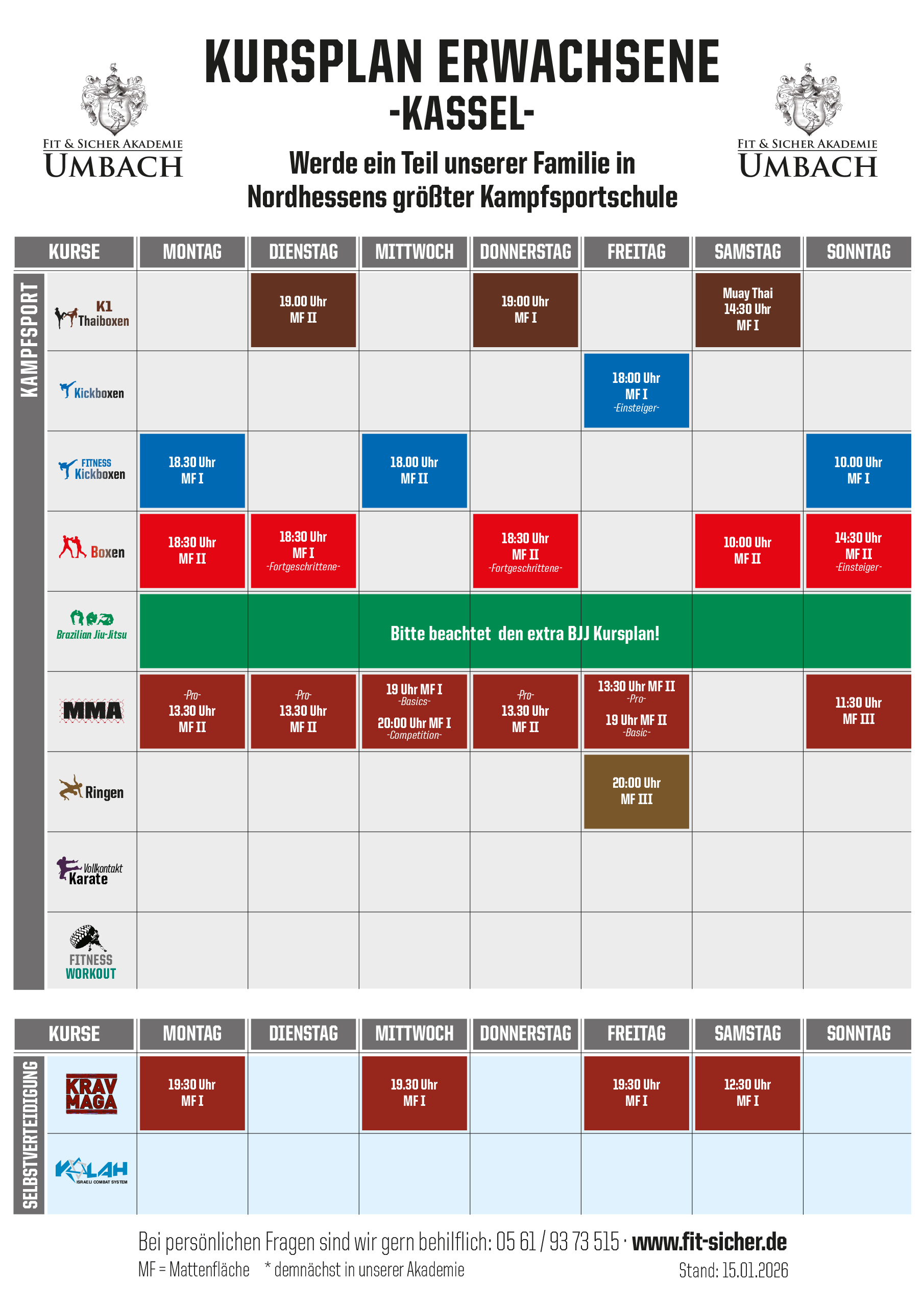 Die Fit & Sicher Akademie Umbach ist einer der größten Anbieter für Kampfsport und Selbstverteidigung in Nordhessen. Unser Team betreut mehr als 1.000 Mitglieder an zwei Standorten – und wir wachsen täglich weiter!